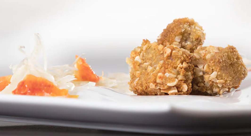 2. Darauf achten, dass die Filetstücke vollständig mit der Panade bedeckt sind und anschliessend in nativem Olivenöl extra anbraten.